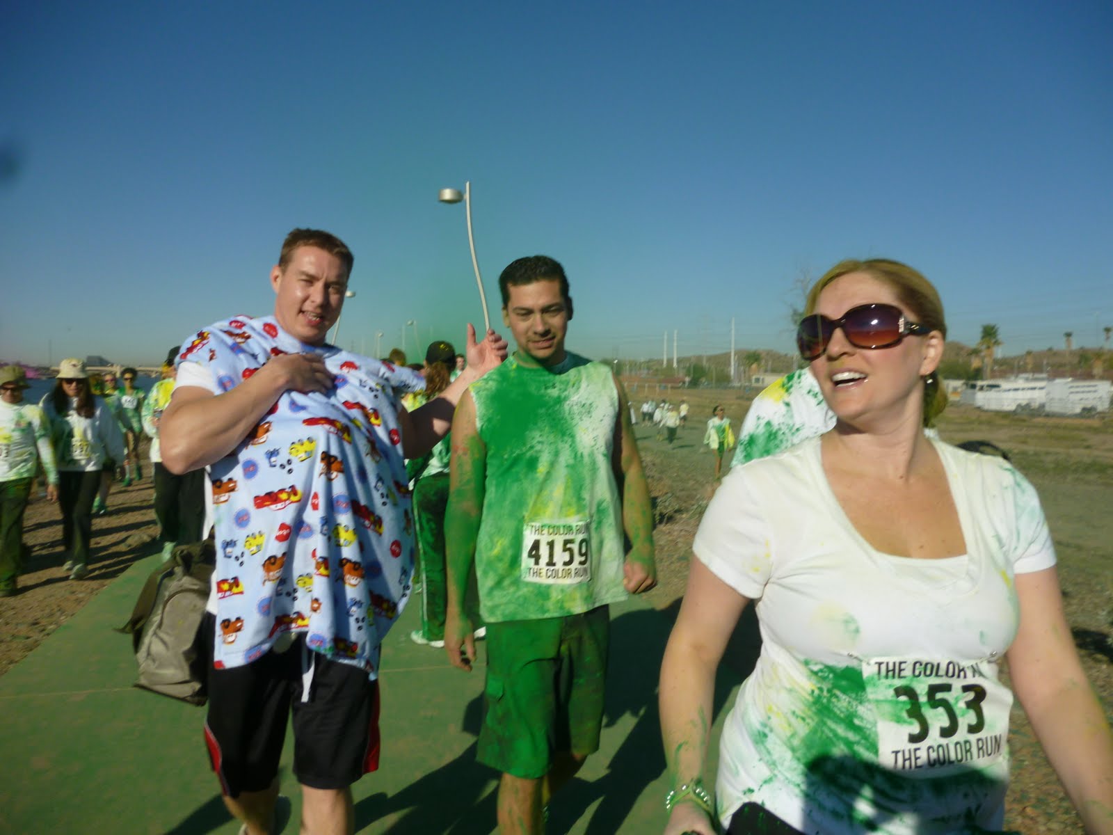 Today was the 'Color Run', a 5k, 3.1 miles I believe, in Tempe. Every half mile, the participants will get 'showered' in different colored powder. The only 'rule' of the race is that you had to wear a white shirt! By the end, everyone is a mess, and it seemed like a fun 'race' for the whole family.
